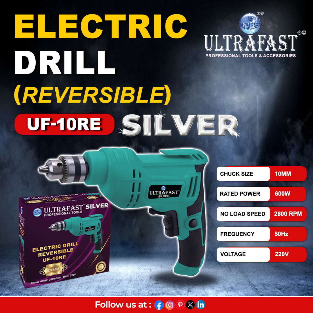 The Ultrafast UF-10RE 10MM Reversible Drill Machine is built for professionals and DIY users looking for a compact yet powerful drilling tool. Powered by a 600-watt copper-wound motor, it delivers up to 2600 RPM for fast, smooth drilling in wood, metal, plastic, and light masonry. The forward-reverse functionality makes it ideal for both drilling and screwdriving tasks, improving productivity on-site or at home. Its ergonomic design allows for comfortable single-hand use, while the sturdy body ensures durability over long-term operation. As part of the ULTRAFAST Silver Series, the UF-10RE provides exceptional motor life, efficient torque output, and dependable performance far beyond typical entry-level tools.