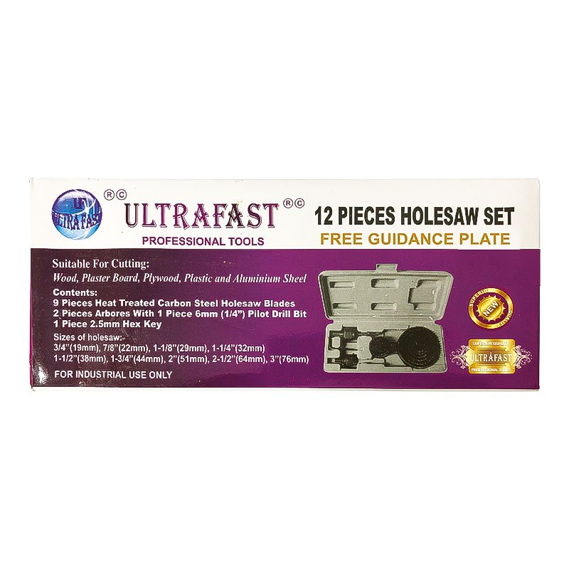 Cover a wide range of cutting tasks with the Ultrafast Carbon Hole Saw Set – 12 Pcs, designed for smooth drilling in wood, plastic, drywall, and soft composites. Featuring durable carbon steel teeth and a balanced design, this set ensures clean, accurate cuts with minimal vibration. The set includes multiple sizes for various hole dimensions, neatly packed in a portable case for convenience. Ideal for both professional tradesmen and DIY enthusiasts across India, the UF 12-Piece Hole Saw Set delivers excellent value and reliable performance.