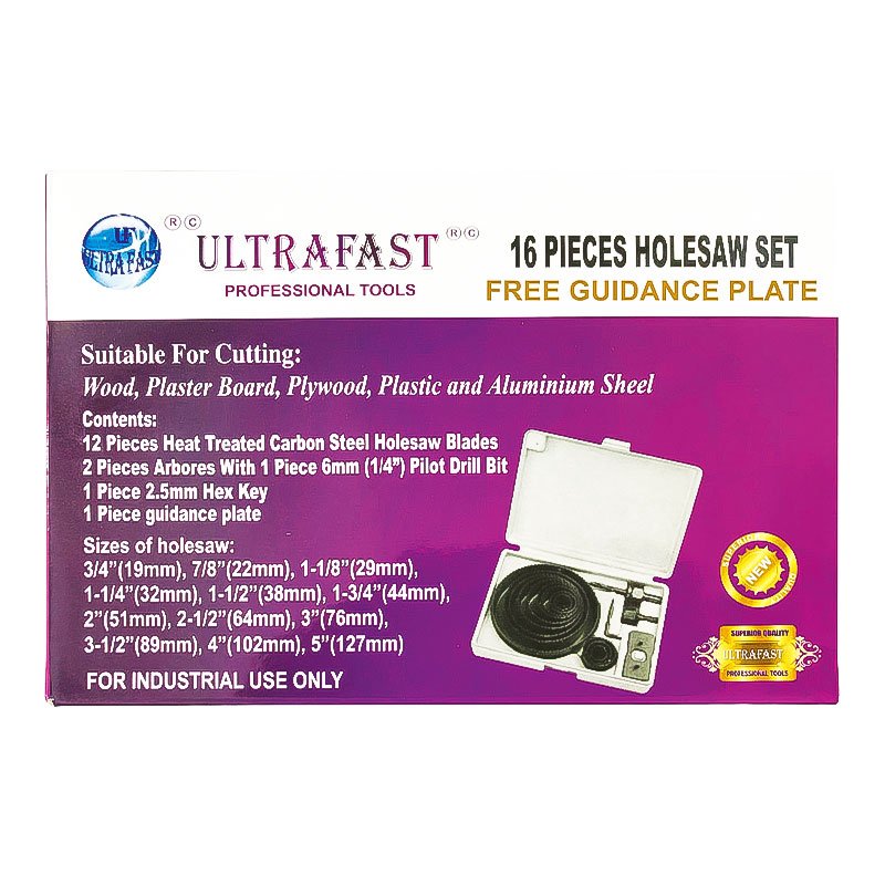 Get ultimate cutting flexibility with the Ultrafast Carbon Hole Saw Set – 16 Pcs, a complete solution for large-scale or multi-purpose drilling needs. Built from high-strength carbon steel, each saw in the set offers sharp cutting edges for precise holes in wood, drywall, plastic, and fiberboard. Whether you're installing fixtures, wiring, or plumbing lines, the UF 16-Piece Set ensures fast, clean results. A sturdy storage box makes this an organized and essential addition to any professional or home toolkit across India.