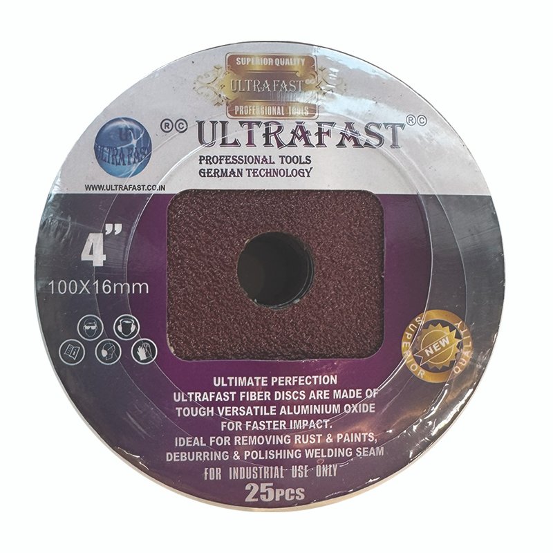 Upgrade your metal finishing process with the Ultrafast Fiber Disc 4”, designed for fast, refined grinding and superior durability. Fitted to suitable backing pads for use with angle grinders, this disc excels in machining metal surfaces at high speeds. Its coated abrasive technology ensures minimal dressing and a higher metal removal rate. Ideal for grinding, surface blending, and finishing tasks, the UF Fiber Disc 4” delivers precision with less pressure, enhancing comfort and control. Widely used in industries across India, this fiber disc boosts productivity and is available in multiple grit sizes for tailored performance on any surface.