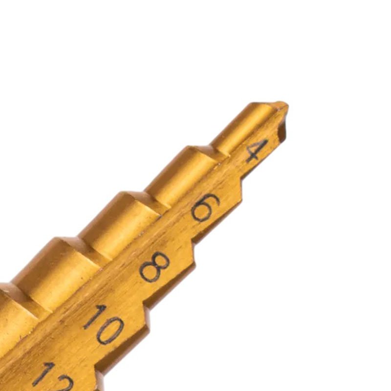 Make multi-size hole cutting faster and cleaner with the Ultrafast HSS Step Drill Bits (Titanium Coated). Crafted from high-speed steel and finished with a durable Titanium Nitride (TiN) coating, this bit delivers 10x longer life than standard bits while resisting heat and wear. Its smart stepped design eliminates the need for pilot drilling or center punching, making it perfect for automatic hole cutting, deburring, and enlarging in metals, wood, plastic, and polymers. The triangular shank ensures a secure grip in the chuck with zero spinning, offering full control during operation. The UF Step Drill Bit is trusted across India for its time-saving efficiency and reliable performance in workshops, fabrication, and installation tasks.